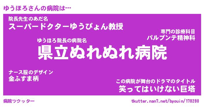 | 恥ずかしいあだ名 | 『プリティーゆうほろ』『ゆうっちょ』 |