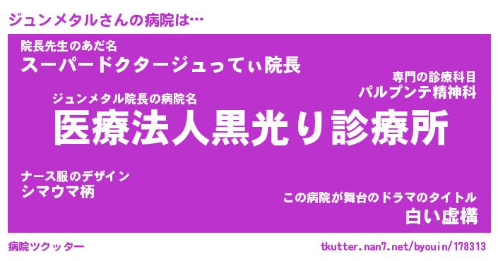 | ツイッター | ジュンメタルさんのツイッターID『namakemono_star』 |