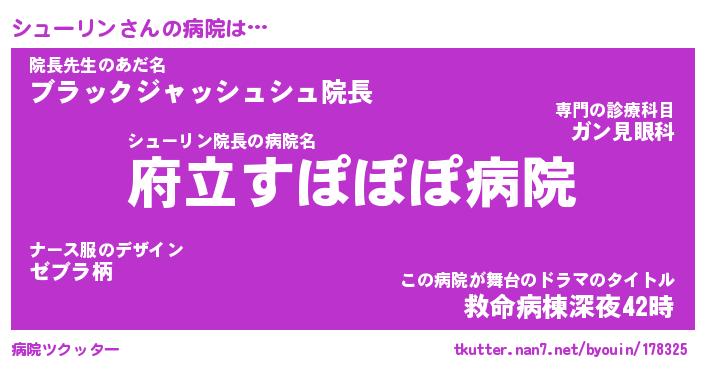 | ヘコむあだ名 | 『シュもー』『なまこ酢』『シュっぺ』 |