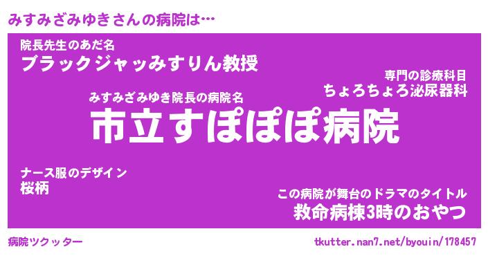 | 恥ずかしいあだ名 | 『プリティーみすみざみゆき』『みすちん』 |