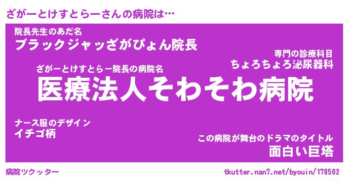 | 胡散臭い通販商品みたいなあだ名 | 『億万長者になれるブレスレット…その名も「ざがーとけすとらー」』 |