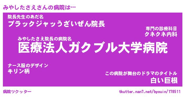 | ピコ太郎風あだ名 | 『ミコ史郎』『ピミ十郎』『ミヤ三郎』 |
