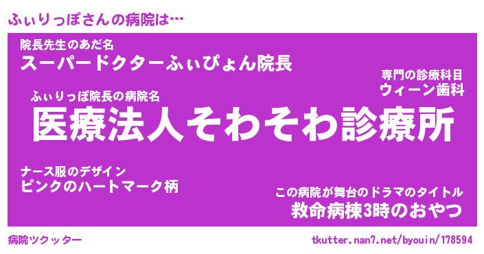 | 胡散臭い通販商品みたいなあだ名 | 『億万長者になれるブレスレット…その名も「ふぃりっぽ」』 |