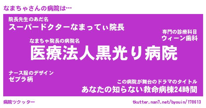 | 意味不明あだ名 | 『ペロリンなまちゃ』『永久保存なまちゃ』 |