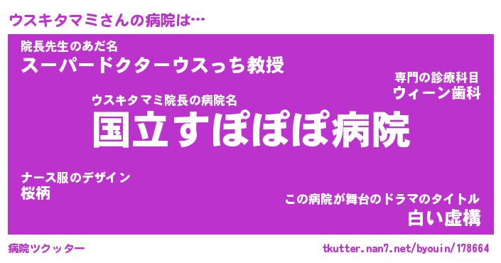 | 伝説のあだ名 | 『伝説のスナイパーウスキタマミ』 |