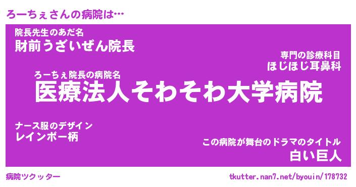 | ヘコむあだ名 | 『ろーふぇ~』『酢こんぶ』『ろーを』 |