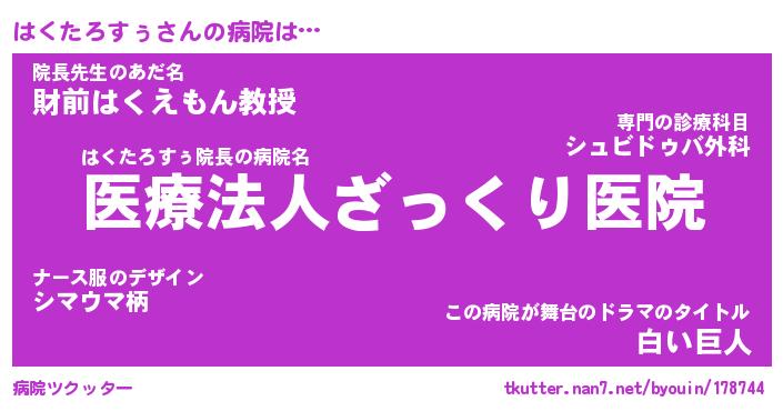 | ピコ太郎風あだ名 | 『ハコ六郎』『ピハ一郎』『ハク太郎』 |