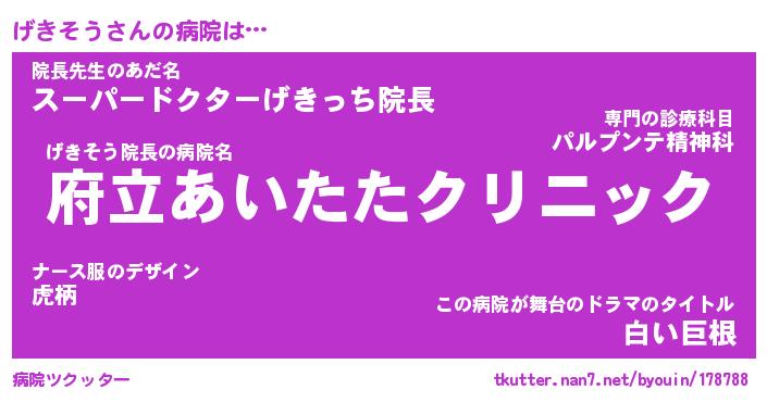 | 2回繰り返すあだ名 | 『げきげき』『げげきき』『ごしごし』 |