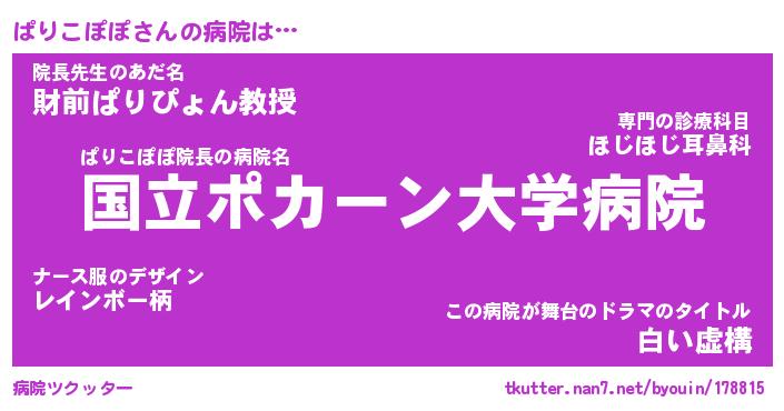 | 男性向けラノベタイトル風あだ名 | 『ぱりこぽぽの憂鬱』 |