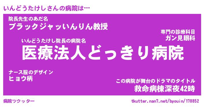 | 肩書あだ名 | 『いんどうたけし御曹司』 |