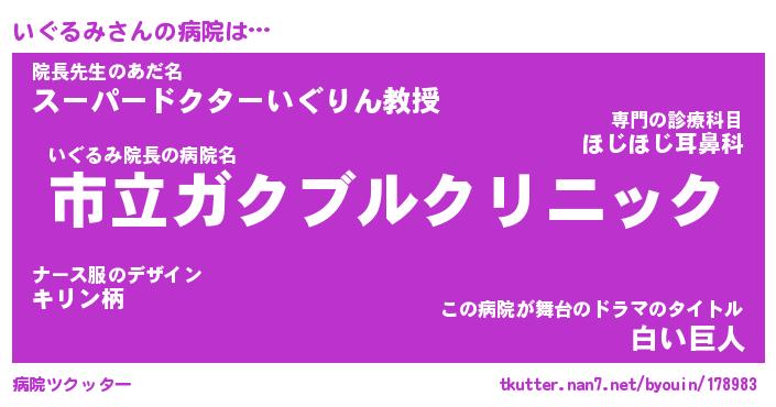 | ヘコむあだ名 | 『いぐにゅー』『牛乳』『いぐを』 |