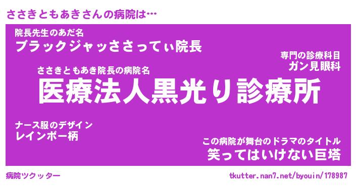 | 恥ずかしいあだ名 | 『プリティーささきともあき』『ささちん』 |
