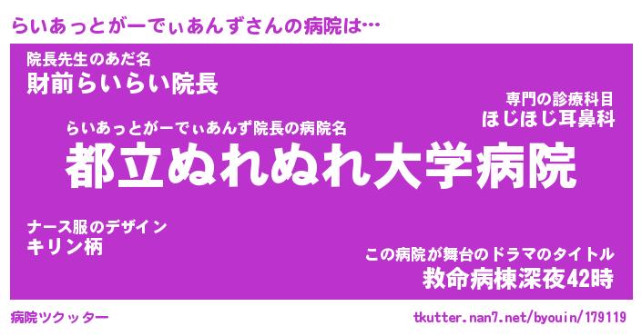 | 欧米人風あだ名 | 『マイケルらいあっとがーでぃあんず』 |