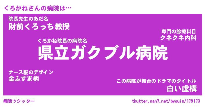| 2回繰り返すあだ名 | 『くろくろ』『くくろろ』『おやおや』 |
