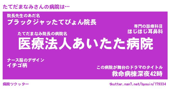 | ヒーロー風カッコイイあだ名 | 『スーパータテダマナミ』『魔戒騎士タテ』 |
