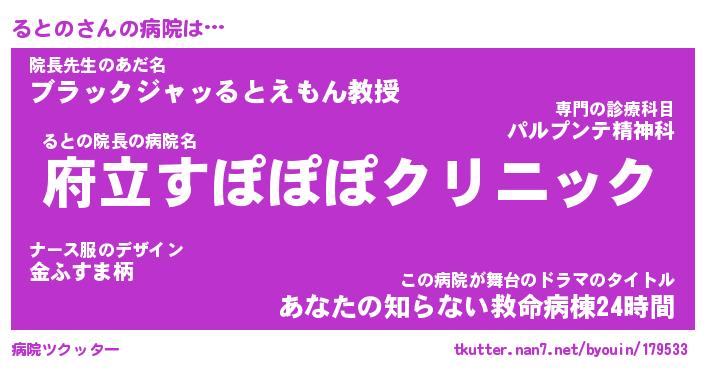 | ヘコむあだ名 | 『るともー』『なまこ酢』『るとお』 |