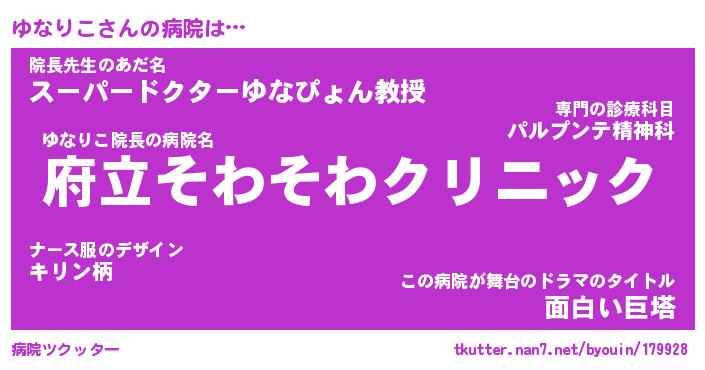 | 意味不明あだ名 | 『ペロリンゆなりこ』『永久保存ゆなりこ』 |