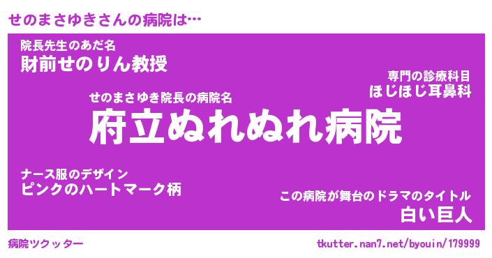 | ヘコむあだ名 | 『せのもー』『酢こんぶ』『せのっぺ』 |