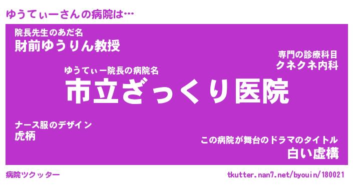 | ファンタジー風あだ名 | 『ユウフェル』『エターナルユウティーー』 |