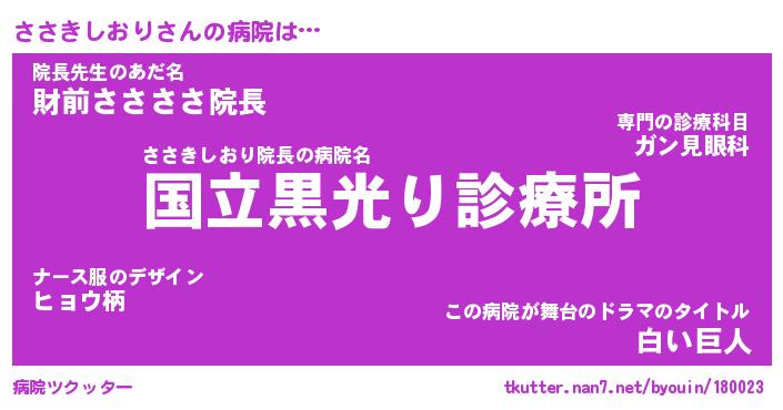 | ヒーロー風カッコイイあだ名 | 『スーパーササキシオリ』『天弓騎士ササ』 |