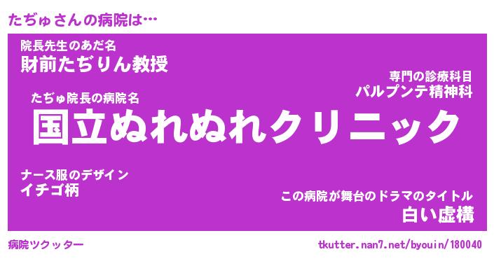 | ヘコむあだ名 | 『たぢもー』『酢こんぶ』『たぢ太郎』 |
