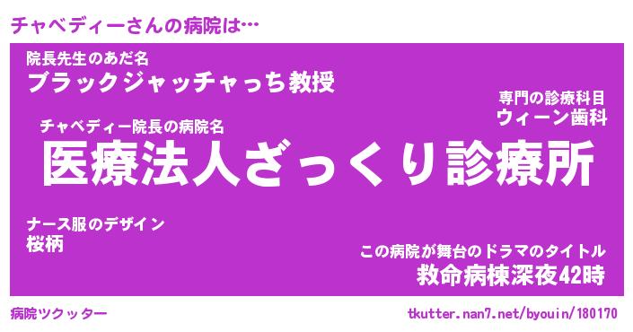 | ヒーロー風カッコイイあだ名 | 『スーパーチャベディー』『魔戒騎士チャ』 |