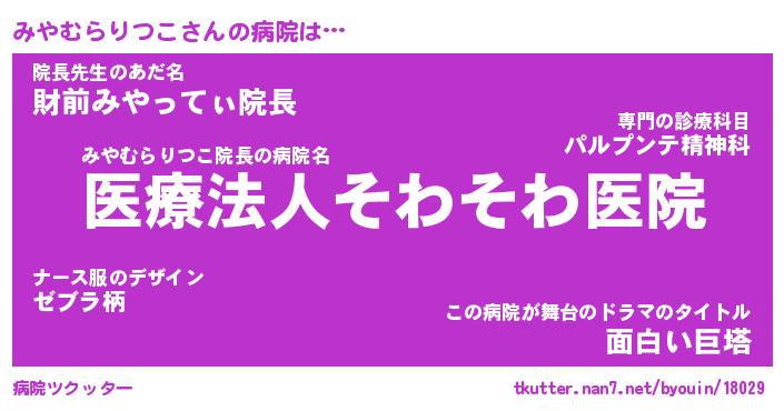 | 胡散臭い通販商品みたいなあだ名 | 『億万長者になれるブレスレット…その名も「みやむらりつこ」』 |