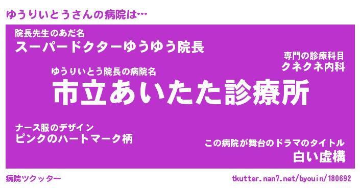 | ヒーロー風カッコイイあだ名 | 『スーパーユウリイトウ』『銀牙騎士ユウ』 |