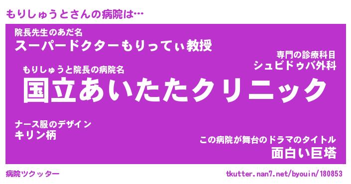 | 伝説のあだ名 | 『伝説のスナイパーもりしゅうと』 |