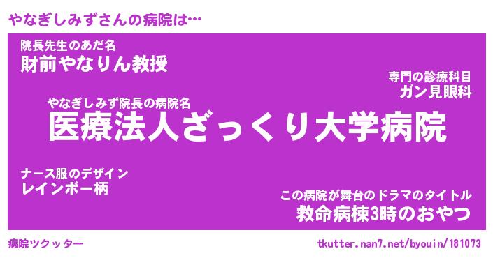 | 伝説のあだ名 | 『封印されしスナイパーやなぎしみず』 |