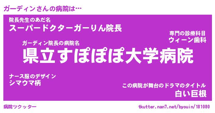 | 男性向けラノベタイトル風あだ名 | 『ガーディンの憂鬱』 |