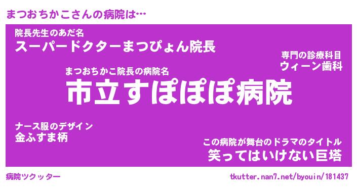 | 伝説のあだ名 | 『伝説のスナイパーまつおちかこ』 |