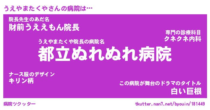 | ポケモン風あだ名 | 『ウエチュウ』『ウエヤダネ』 |