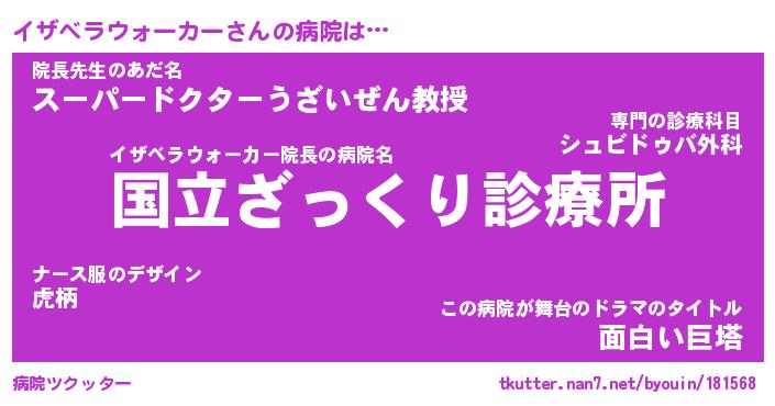 | 女子向けラノベタイトル風あだ名 | 『(仮)イザベラウォーカーのやんごとなき事情』 |