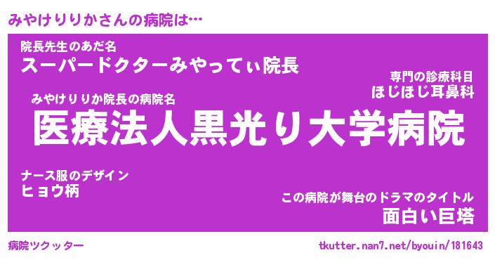| 肩書あだ名 | 『みやけりりかCEO』『みやけりりか班長』 |