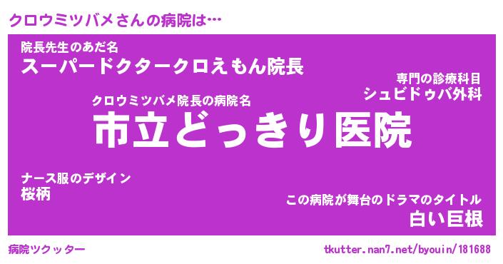 | 2回繰り返すあだ名 | 『クロクロ』『ククロロ』『にたにた』 |