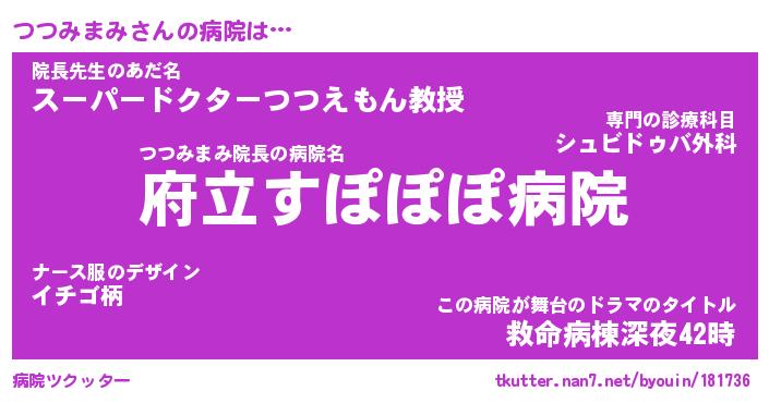 | ポケモン風あだ名 | 『ツツチュウ』『ツツミダネ』 |