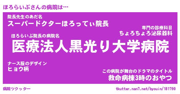 | ヘコむあだ名 | 『ほろにー』『牛乳』『ほろ太郎』 |