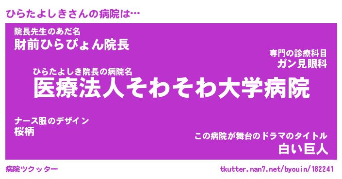 | ヘコむあだ名 | 『ひらふぇ~』『なまこ酢』『ひらお』 |