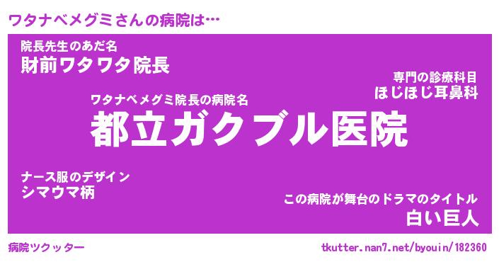 | 2回繰り返すあだ名 | 『ワタワタ』『ワワタタ』『ぬるぬる』 |