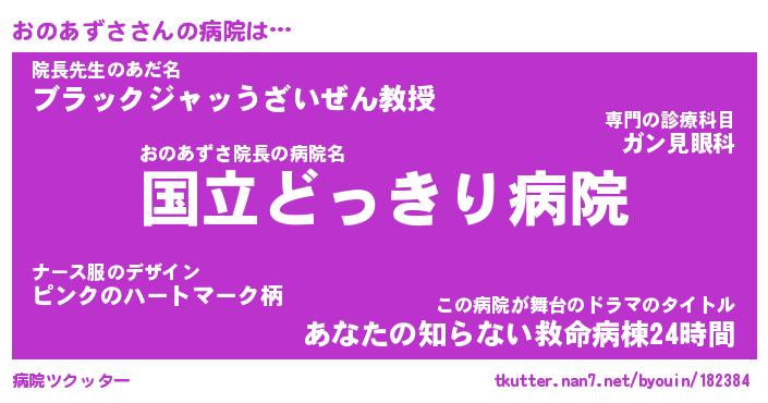 | 男性向けラノベタイトル風あだ名 | 『おのあずさの憂鬱』 |