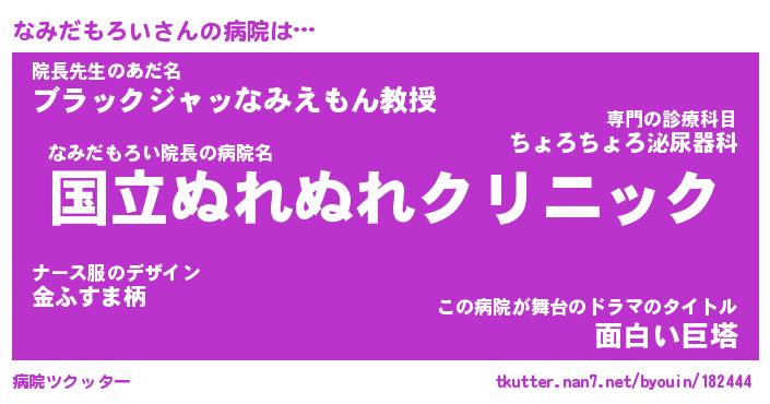 | 女子向けラノベタイトル風あだ名 | 『(仮)なみだもろいのやんごとなき事情』 |