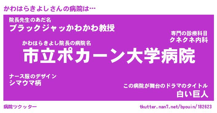 | 男性向けラノベタイトル風あだ名 | 『かわはらきよしの憂鬱』 |