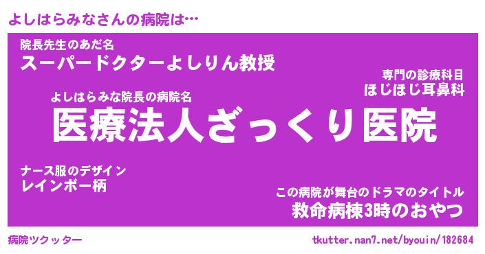 | ツイッター | よしはらみなさんのツイッターID『namakemono_nyan』 |