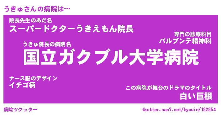 | 女子向けラノベタイトル風あだ名 | 『(仮)うきゅのやんごとなき事情』 |