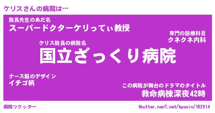| ヒーロー風カッコイイあだ名 | 『スーパーケリス』『ウルトラケリスマン』 |