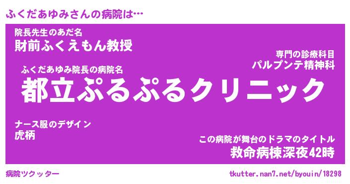 | 恥ずかしいあだ名 | 『プリティーふくだあゆみ』『ふくっちょ』 |