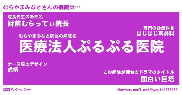 | 2回繰り返すあだ名 | 『むらむら』『むむらら』『なあなあ』 |