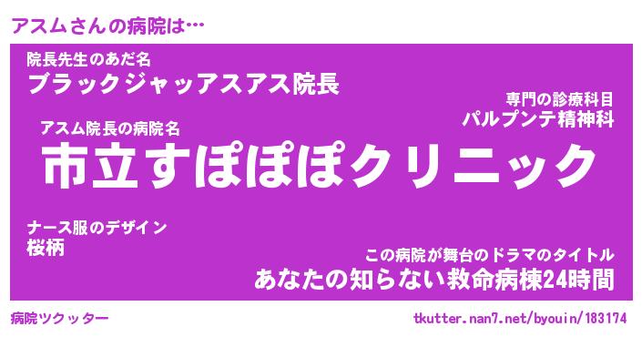 | ポケモン風あだ名 | 『アスチュウ』『アスムダネ』 |