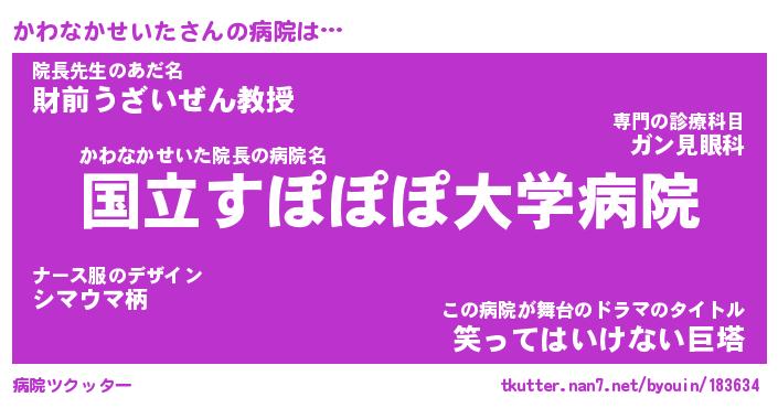 | 伝説のあだ名 | 『伝説のスナイパーかわなかせいた』 |